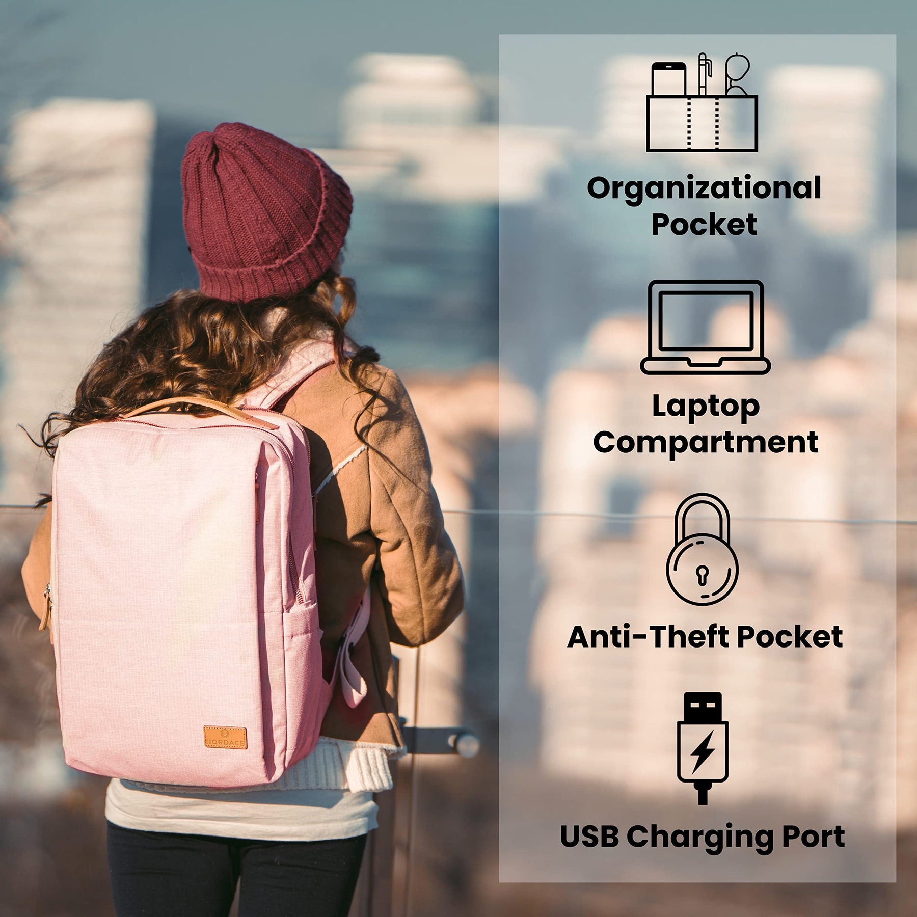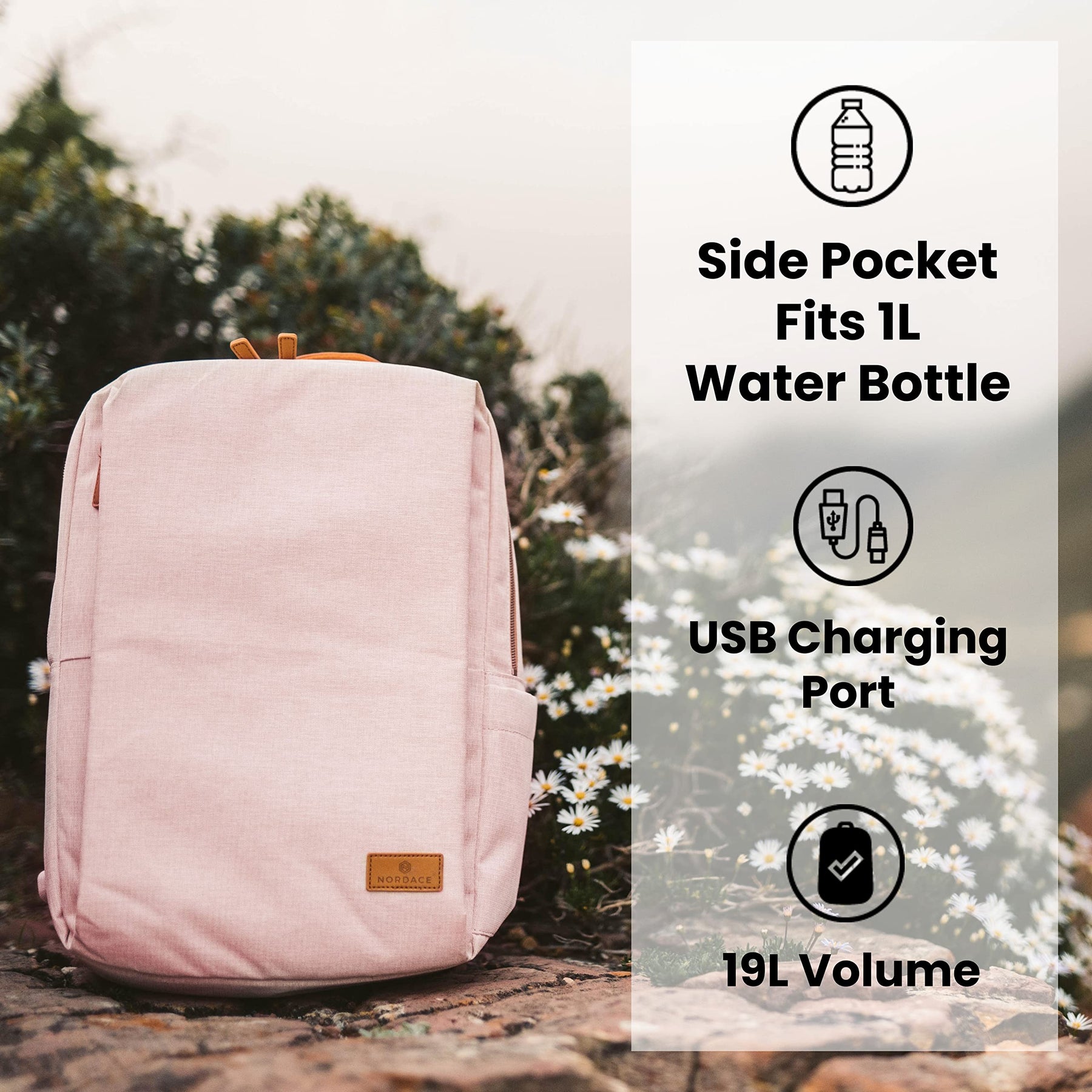 Nordace Siena Smart Backpack with USB Charging - 15.6 Inch Laptop Backpack, 19L Daily Backpack for Travel, Everyday, or Work (Pink)