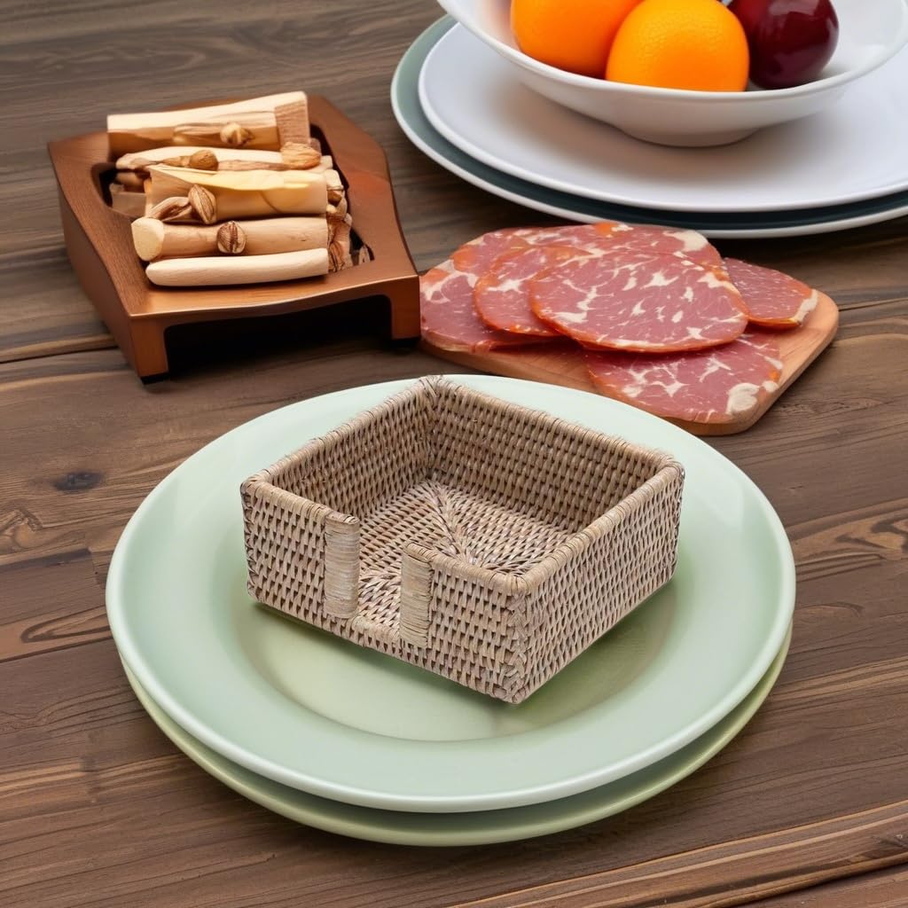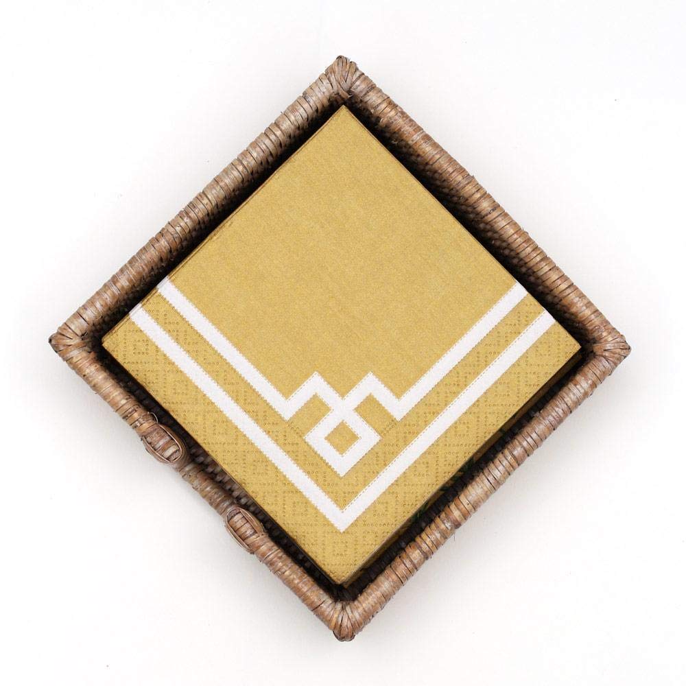 Perfectly sized to hold Caspari paper and paper linen napkins, our napkin holders are an easy addition to your tabletop décor. Use them to keep napkins neatly presented and always within reach in your dining room, on your coffee table, kitchen counter, or in a guest bath. Our rattan style napkin holders coordinate well with all Caspari Napkin designs, colors, and seasonal styles. The collection is crafted from naturally beautiful woven rattan material. Each can hold up to 2 packs. Can be used for indoor or outdoor entertaining but are not suitable for outdoor storage or exposure to inclement weather conditions.