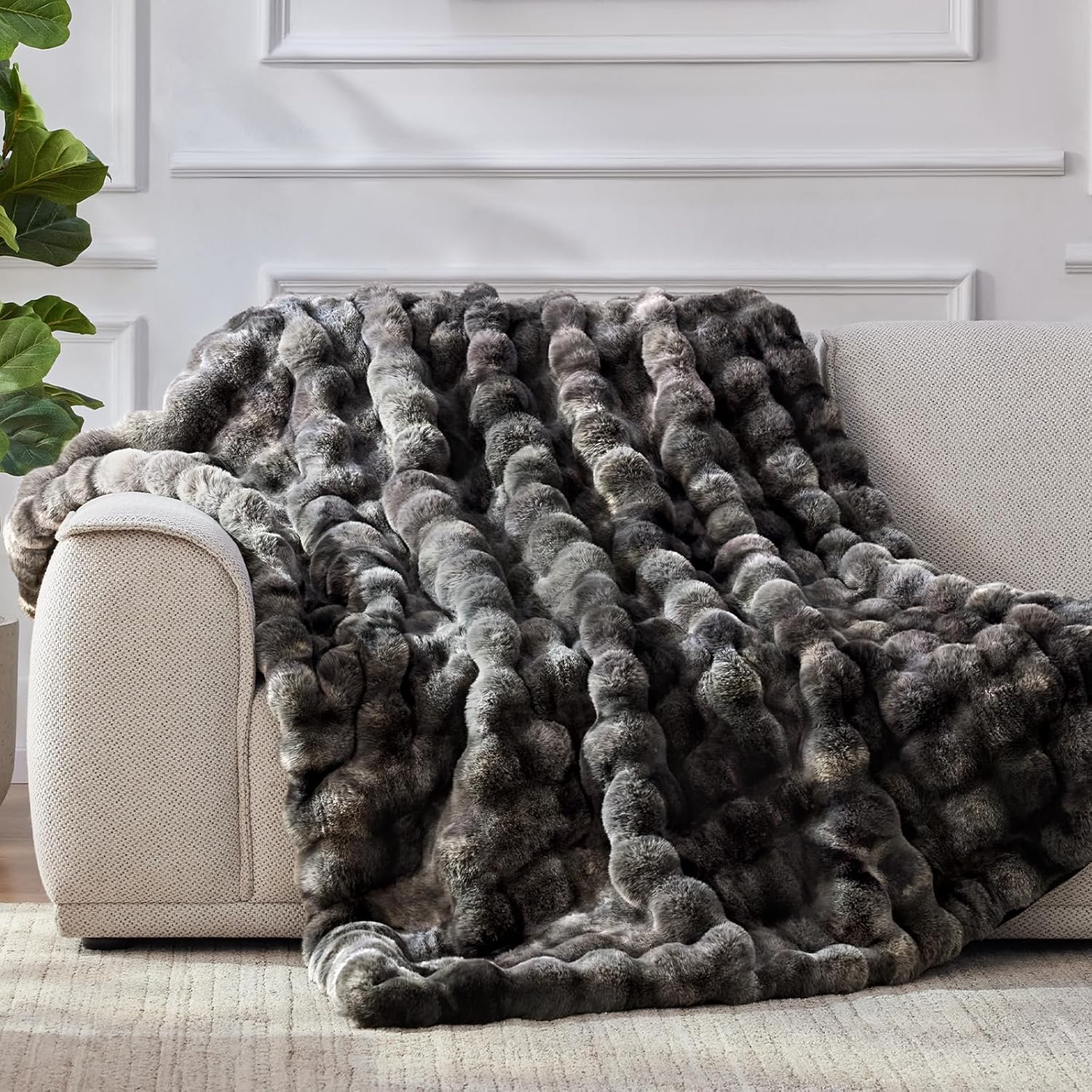 Faux Fur Throw Blanket, 1000GSM Fluffy Soft Bubble Blanket for Couch Bed, Cozy Plush Warm and Thick Blanket, Fuzzy Rabbit Lola Throw for Living Room Bedroom 50&