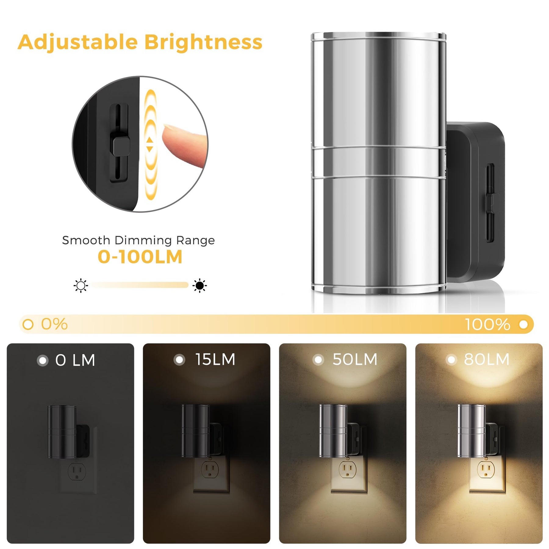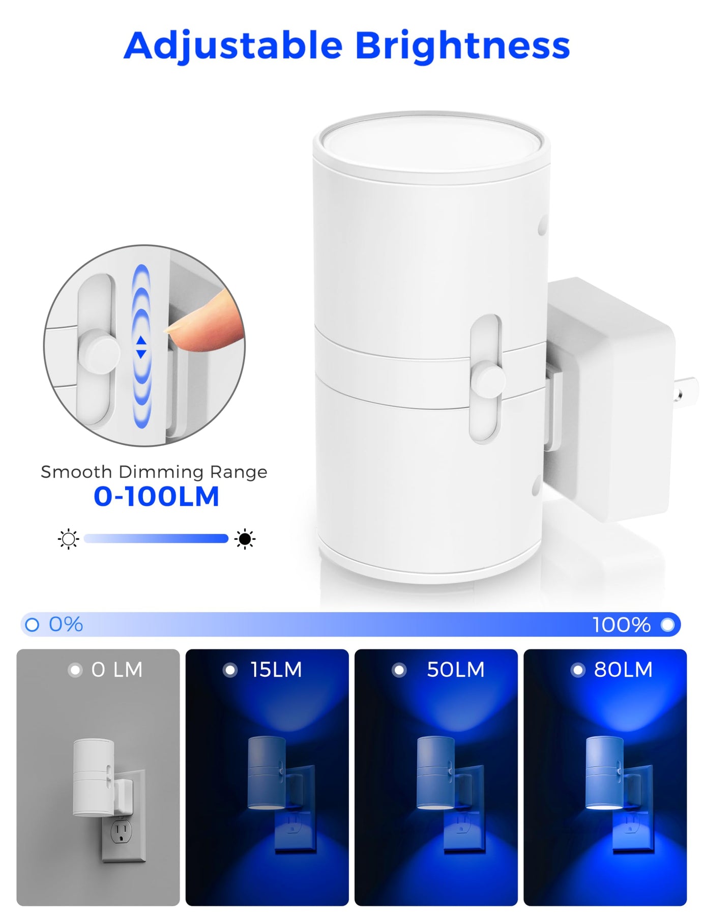 Dimmable Night Lights -- The nightlight adjustment button can be adjusted from 0-100LM, which can meet your different needs.