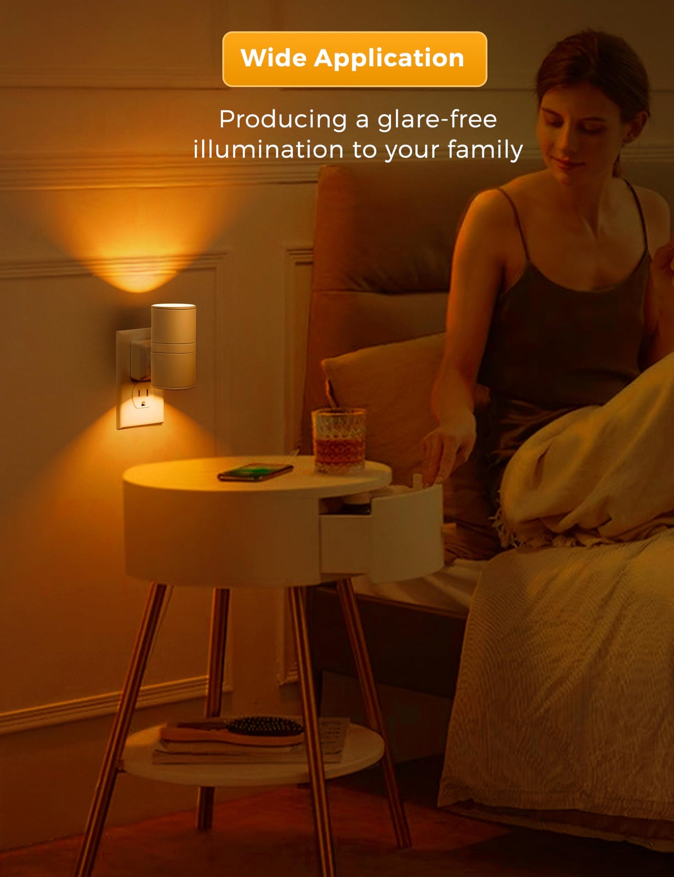 Protect Your Eyes - LED night light with light sensor produces a soft glare-free illumination to your family. Especially suitable for those children or elderly people who are afraid of the dark.