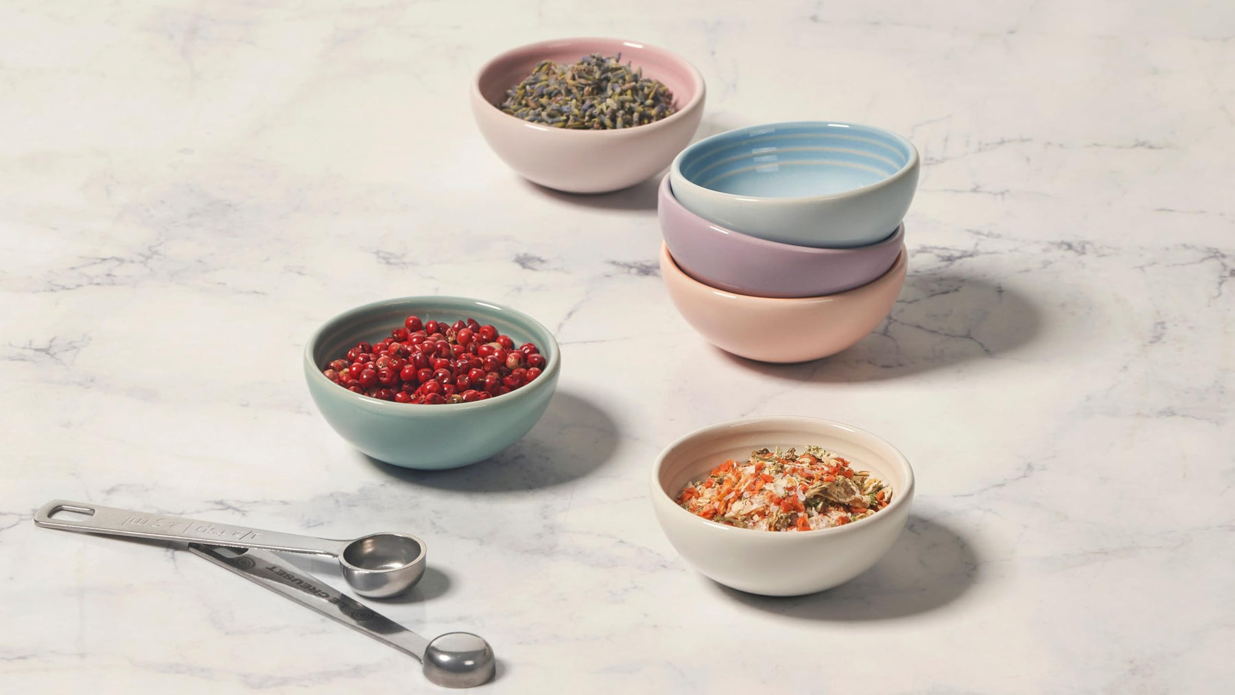 Pinch Bowls are a kitchen staple for measuring and staging ingredients, and a clever way to keep salt, pepper, spices and herbs within easy reach while cooking. With their perfectly sized 2-ounce capacity, they’re also a creative way to serve appetizers, condiments, salad dressings, sauces and dips at the table or along a buffet line. The set of 6 multi-colored bowls come packaged in an attractive gift box ready for giving.