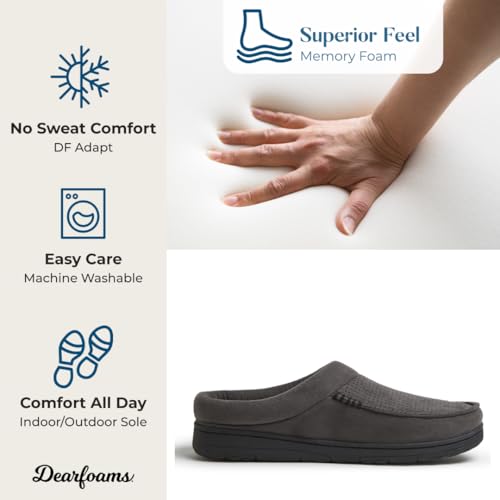 NO SWEAT COMFORT: Say goodbye to sweaty feet! Our Brendan men’s clog slippers feature innovative DF Adapt technology that actively regulates temperature, helping prevent moisture buildup and keeping your feet cool, dry, and comfortable all day long.