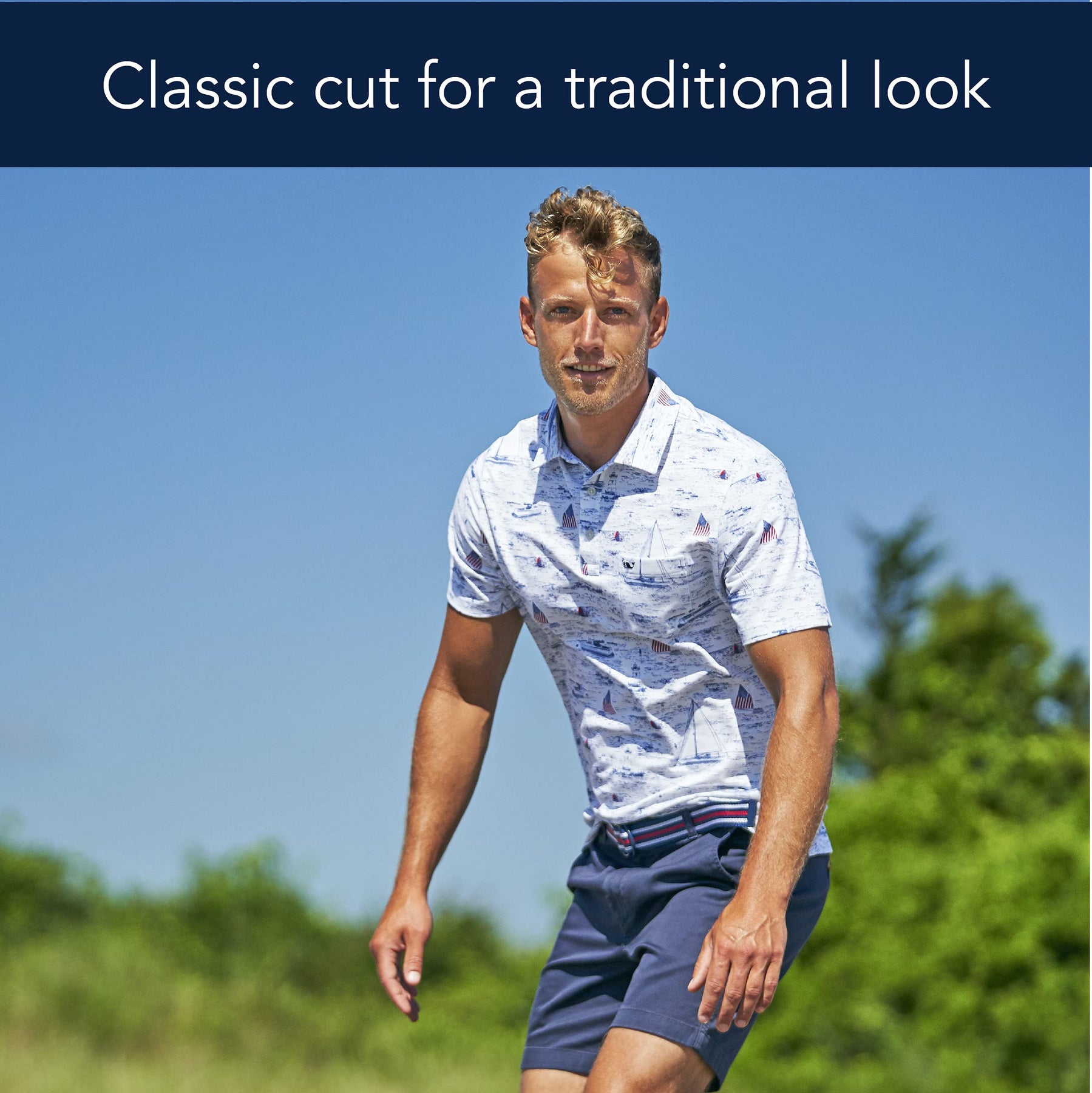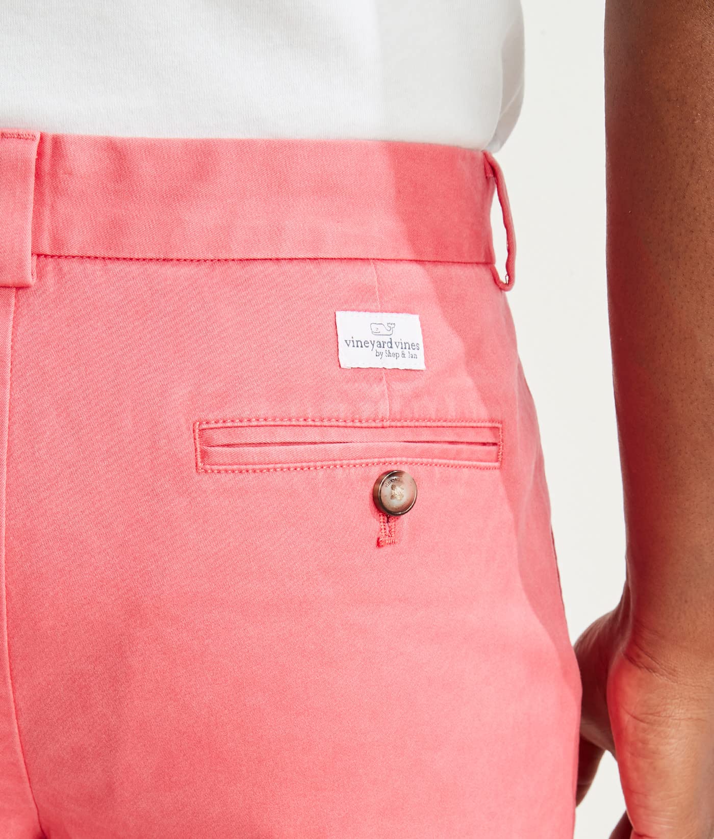 We've always loved traditional chino shorts, so we wanted ato keep the classic style but add in subtle enhancements that would keep us comfortable no matter what we got into. vineyard vines Men’s 9 inch Shorts keep all of the tried-and-true style of a pair of classic chinos, with the added stretch and out-of-the-box softness that we (and you) love. The lightweight fabric of these men’s knee length shorts is comfy, strong, and breathable. They stretch for mobility and have a water-resistant finish, so they keep up with you no matter where your day goes. They are great for work, golf, and everyday wear. Plus, these men's shorts have a classic cut for a traditional look with slash, mesh pockets, tonal rubber buttons and a button-through waistband closure. Make sure it’s vineyard vines quality: look for “Ships from and sold by Amazon” at the top of the page, under the product title. At vineyard vines, we think Every Day Should Feel This Good! We have been family owned since 1998. For over 25 years, we’ve been sharing the gift of the Vineyard with everyone we can. Care Instructions: Machine wash.