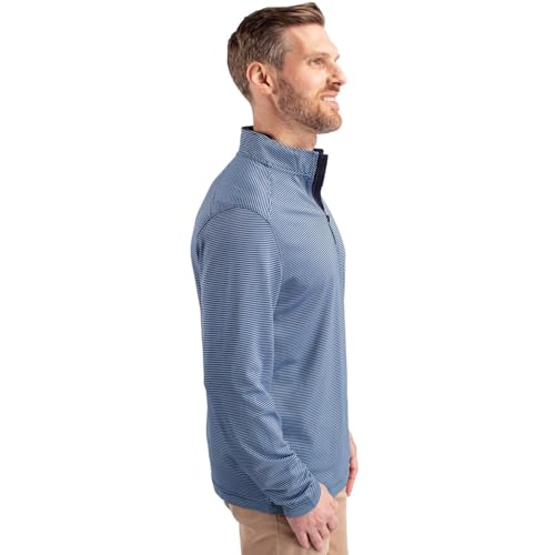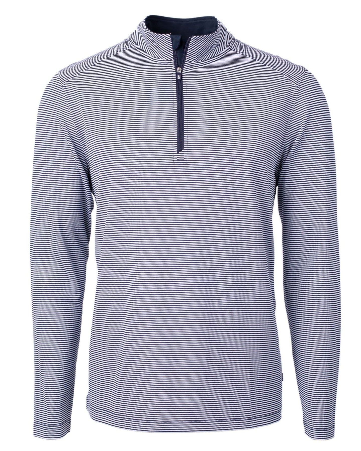Cutter & Buck Mens Virtue Eco Pique Micro Stripe Recycled Mens Quarter Zip