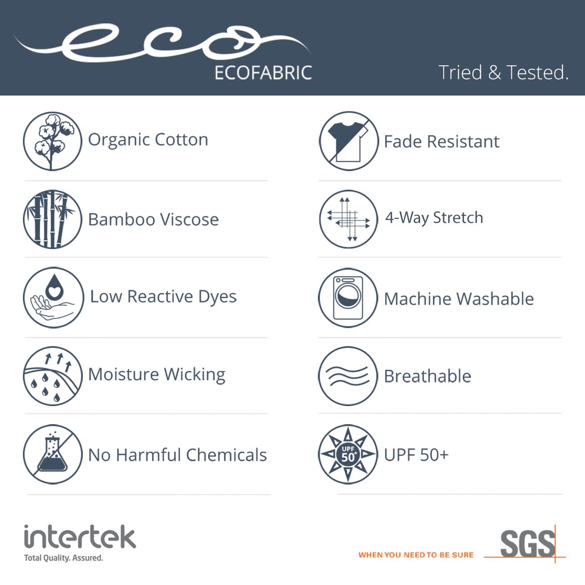 NEW & IMPROVED FABRIC: In an effort to be more environmentally responsible, we have decided to transition our fabric composition. Our EcoFabric blend is made of 55% Organic Cotton, 40% Modal and 5% Spandex 220 GSM jersey. It is soft, breathable, and super cozy! Its moisture wicking properties draw perspiration off your skin and out to the exterior of the fabric, keeping you cool year-round.