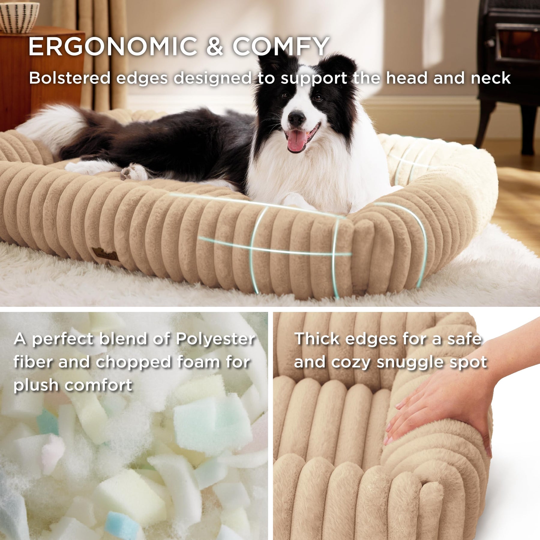 • Supportive Raised Sides: The raised sides provide a cozy nook for your pet’s head and neck, promoting peaceful sleep. The 2:1 mix of chopped foam and polyester fiber offers perfect support and comfort for pets of all sizes.