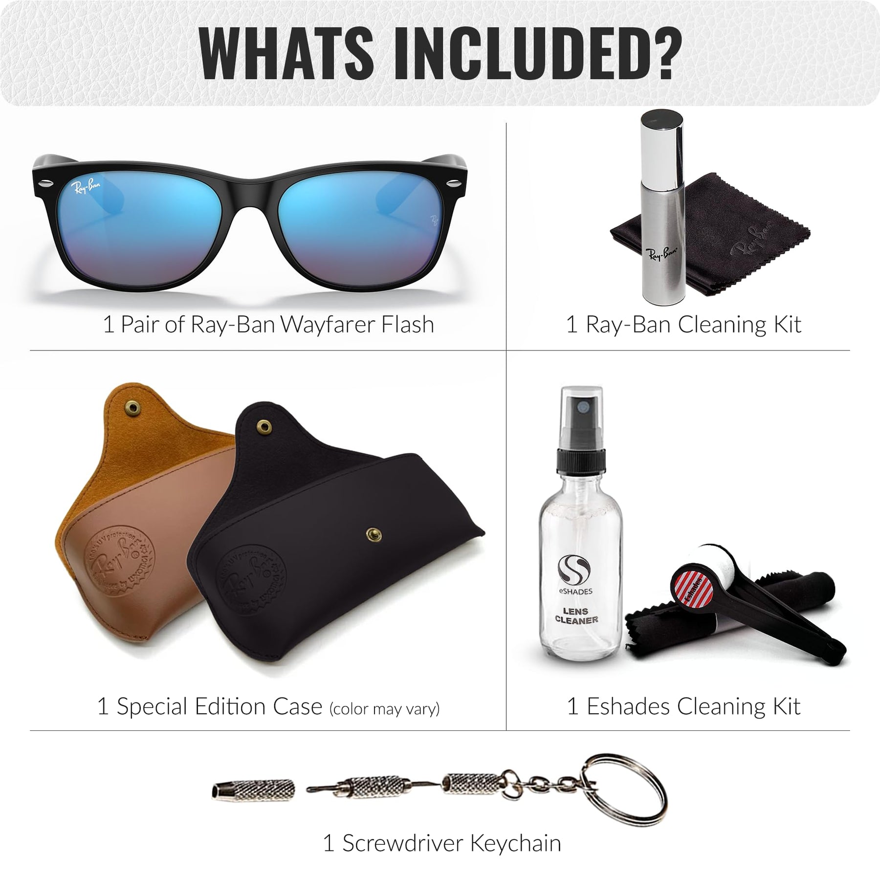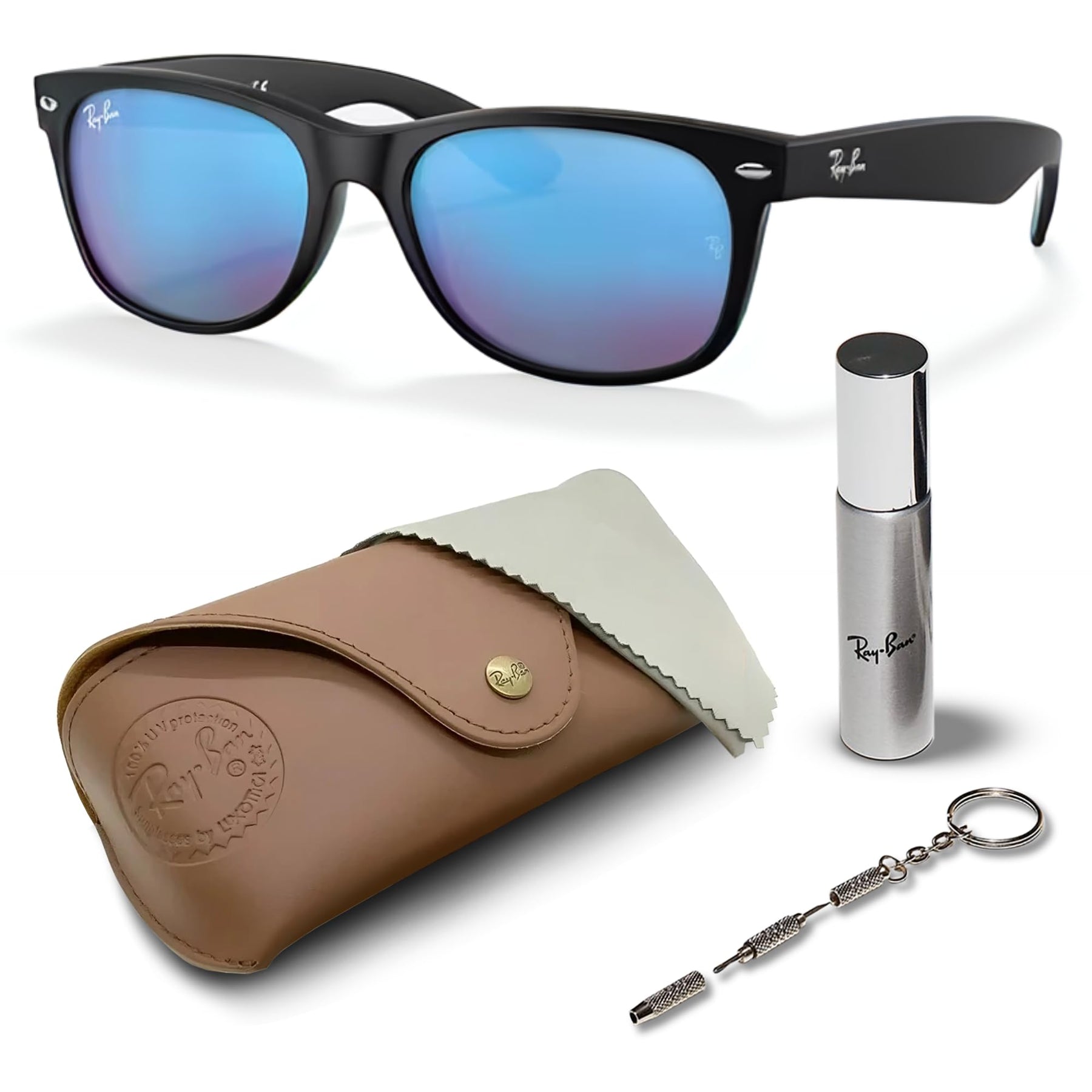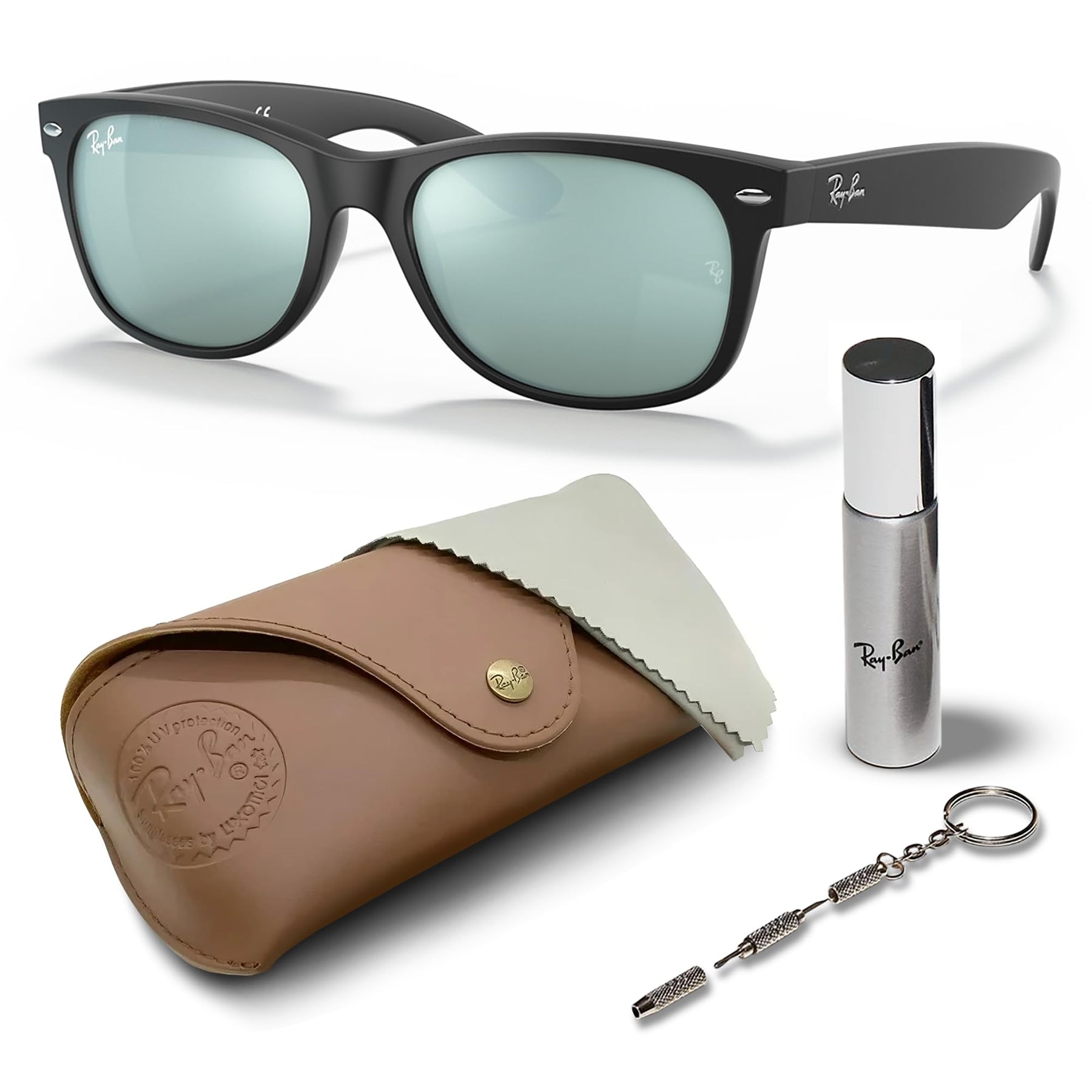 Exclusive Eyewear Set: Your purchase includes more than just iconic shades. Alongside these sunglasses, enjoy a complimentary Ray-Ban Eyewear Kit. This kit features a glasses cleaning kit with a case, ensuring your eyewear remains pristine wherever you go.