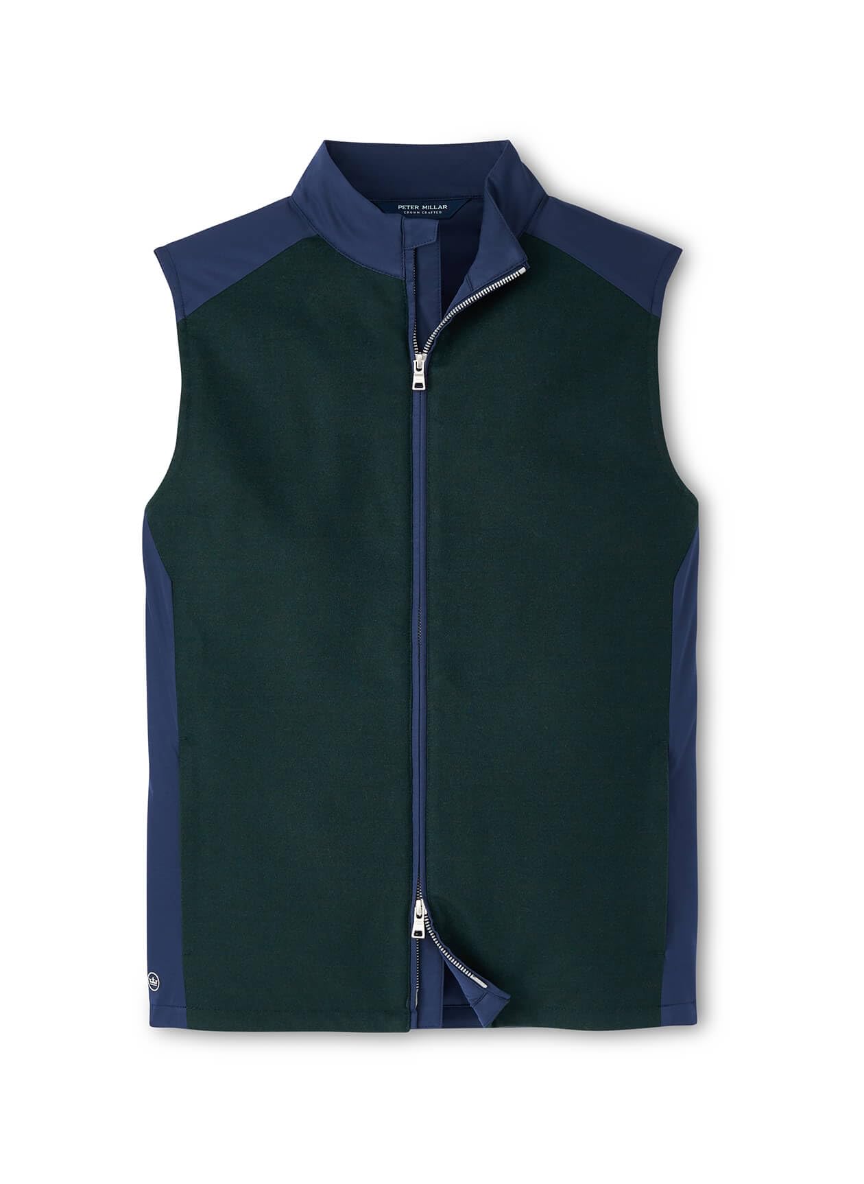 The Cambridge is a harmonious blend of performance and luxury, boasting a soft Merino wool front panel and a flexible, performance-oriented back. It offers light insulation for warmth, and features a two-way zip front and secure hand pockets.