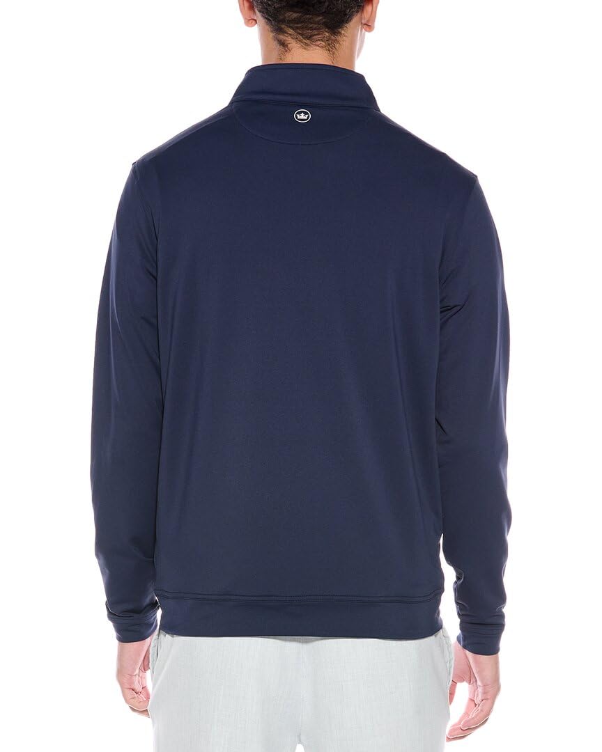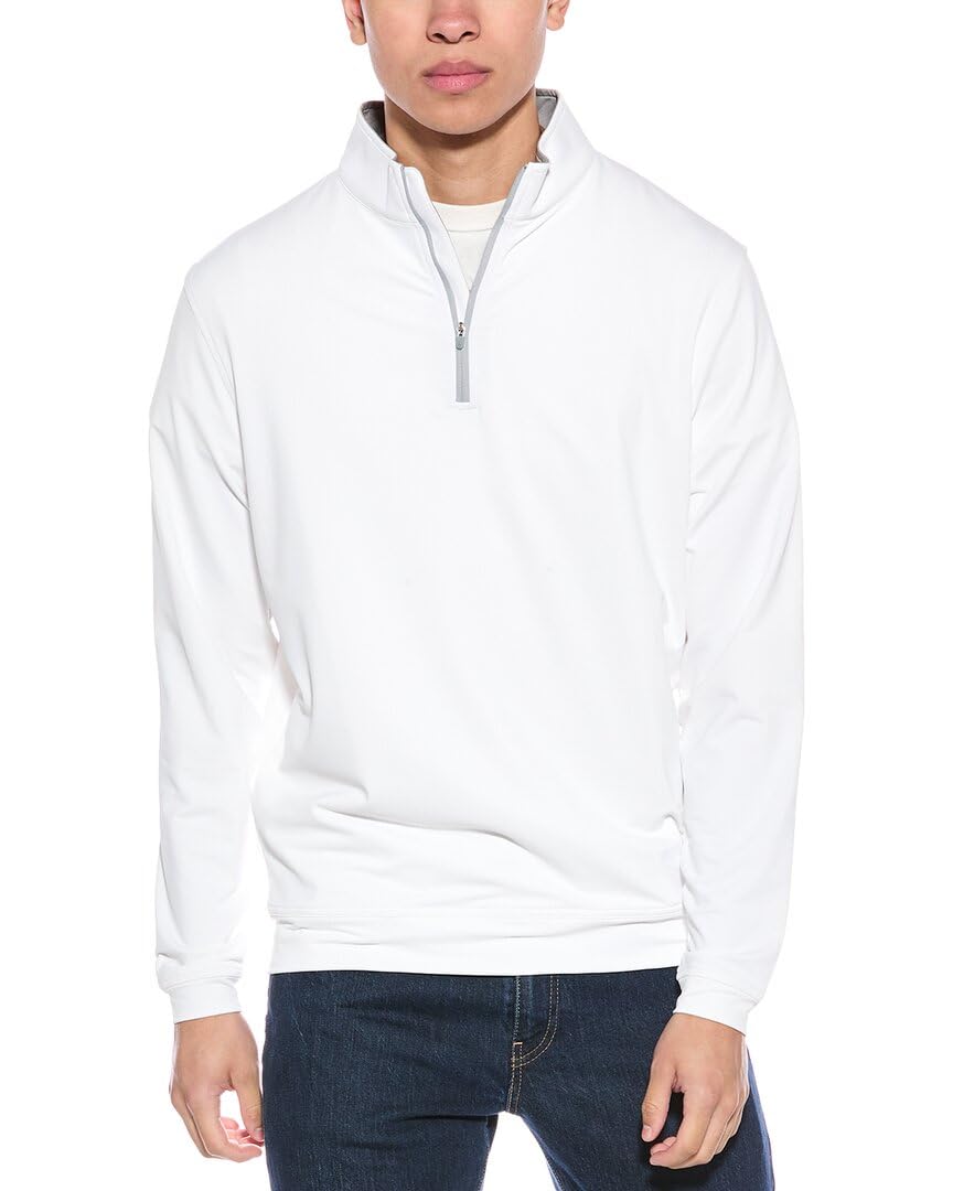 This classic quarter-zip offers a performance-driven twist, featuring four-way stretch, moisture-wicking, and easy-care benefits for lasting comfort and confidence. Its melange fabric provides subtle style variation, finished with a mock collar and banded cuffs and hem.