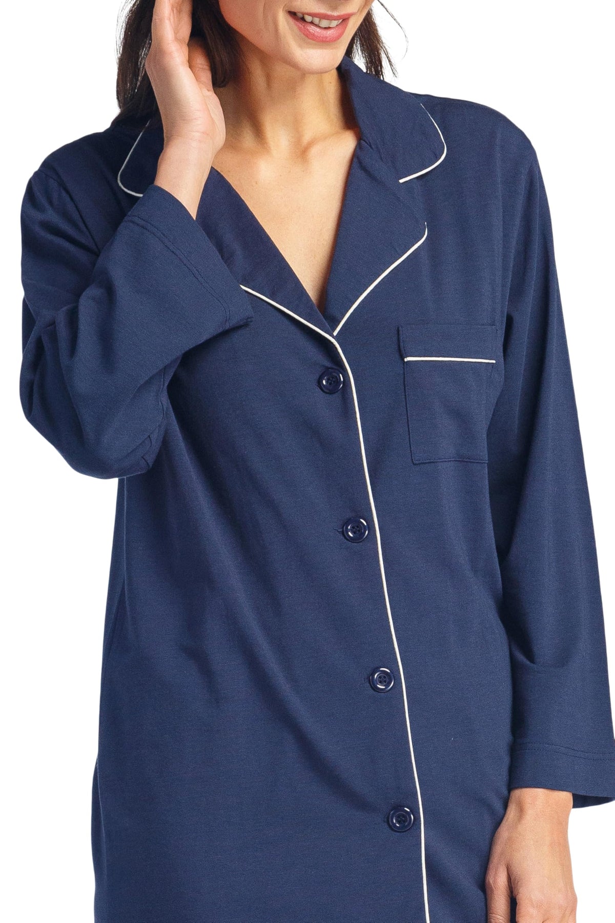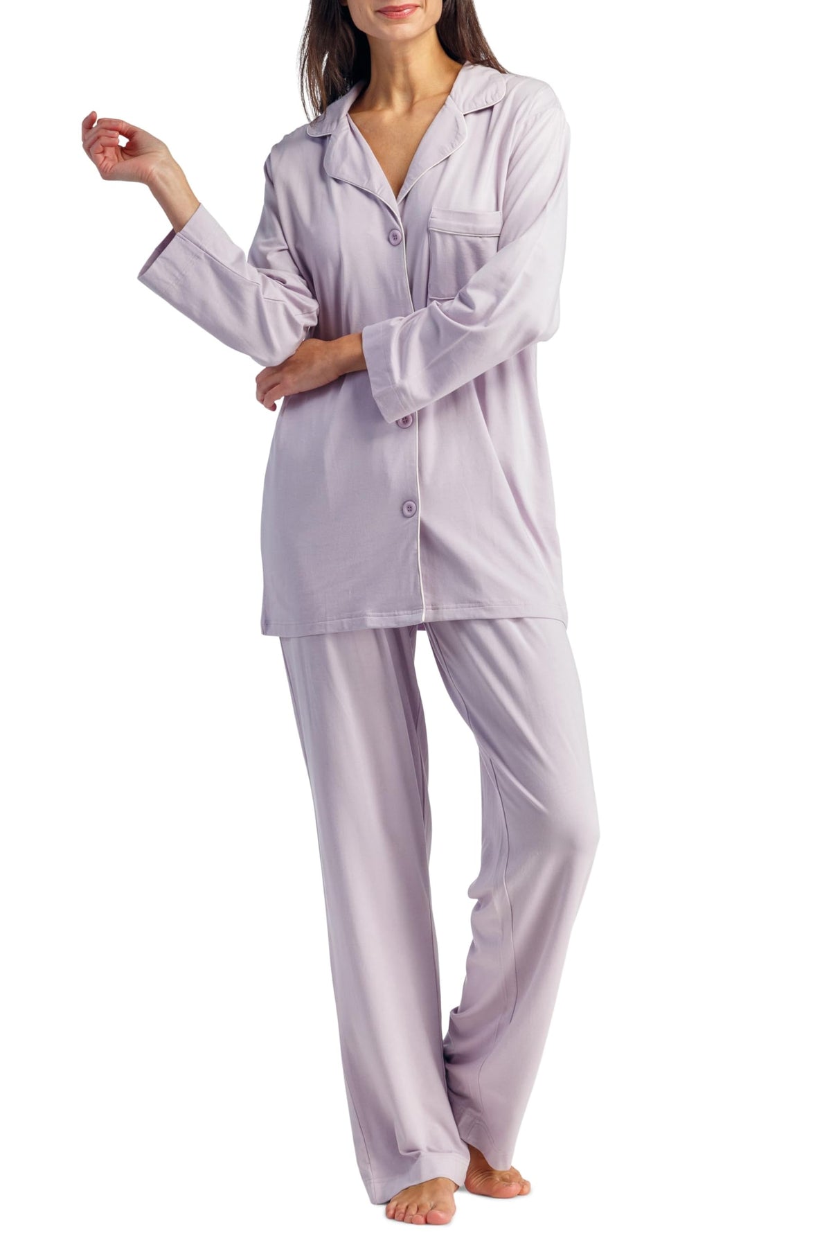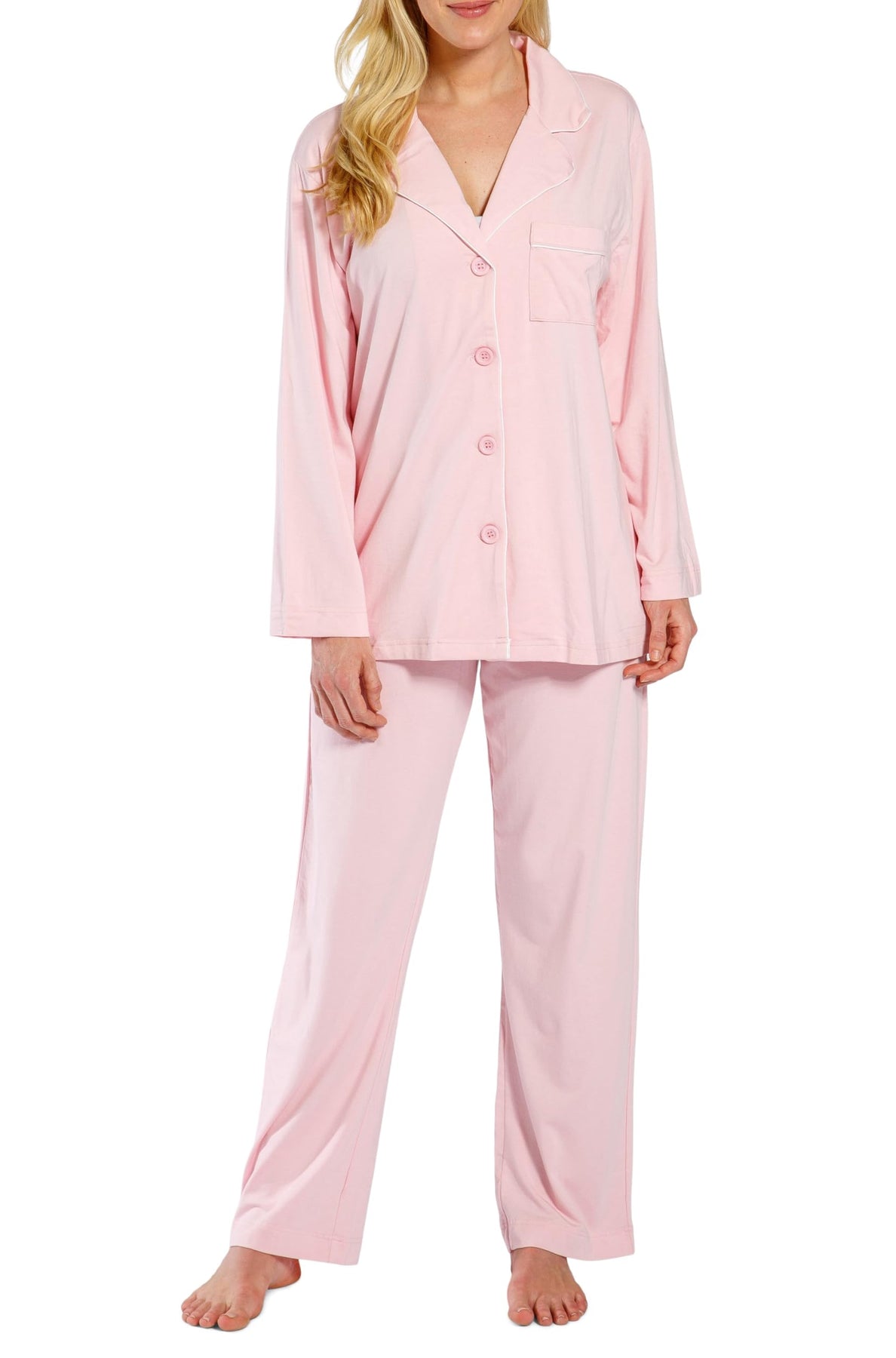 PERFECT FIT: It’s all in the details. Our long sleeve, button-front top is trimmed with white piping. A wide notched collar and relaxed fit add extra comfort. Our elastic waist full length pant brings comfort to another level. We have added an adjustable drawstring to customize fit even more.