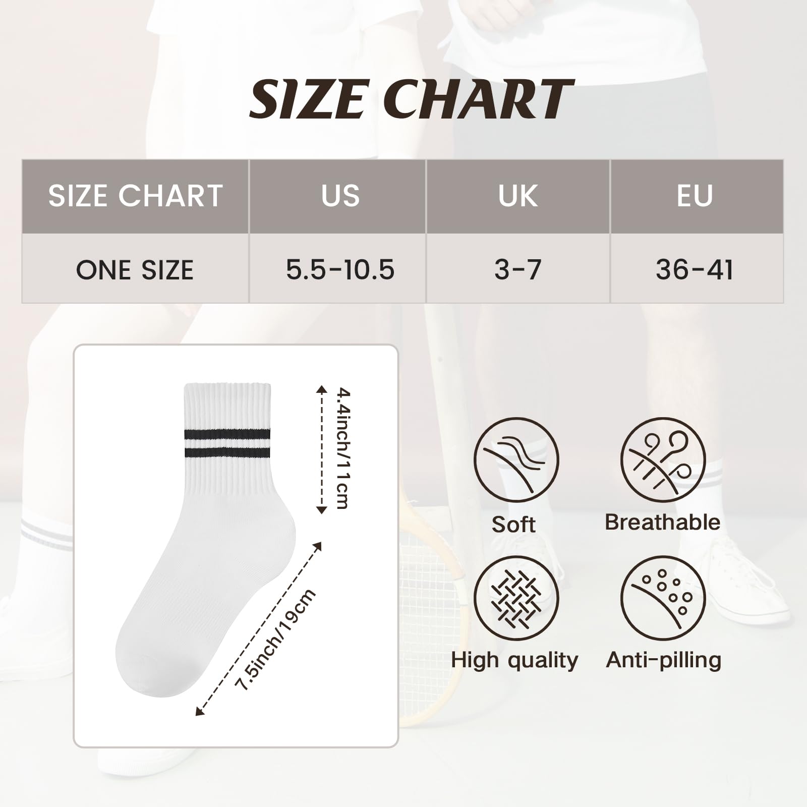 • Comfortable & Cushioned: The athletic socks are made of elastic fabric, providing just the right amount of tightness, making your feet very comfortable during the wearing process; The crew socks reinforced heel protects your foot joints even during exercise