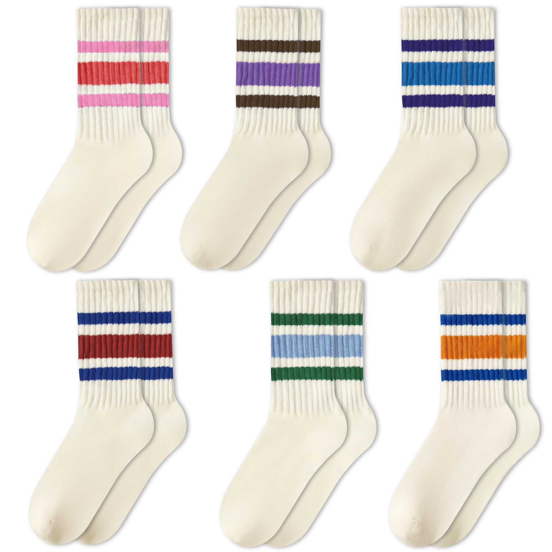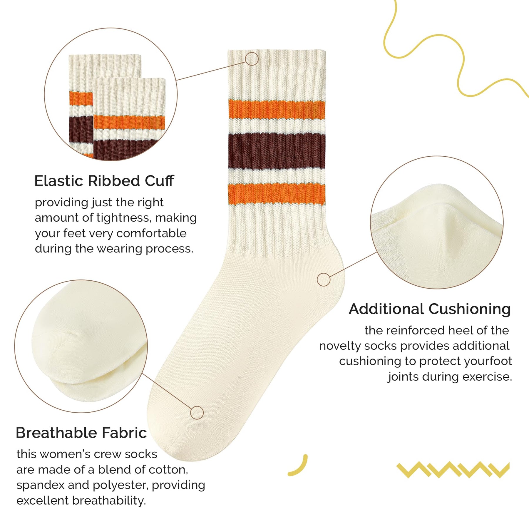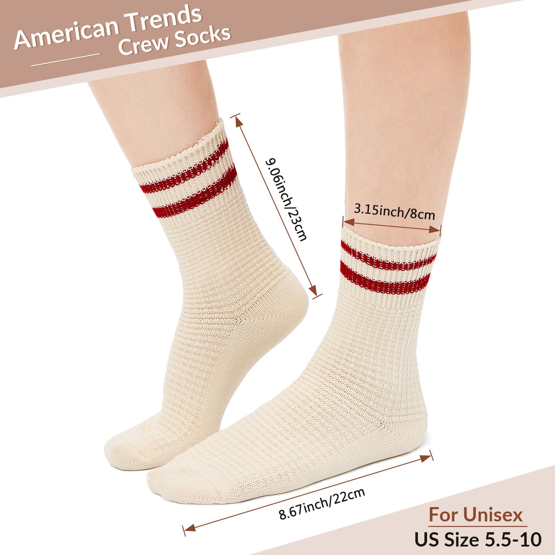 American Trends Retro Striped Crew Socks for Women Slouchy Athletic Calf Tube Socks Running Golf Tennis Volleyball Etc