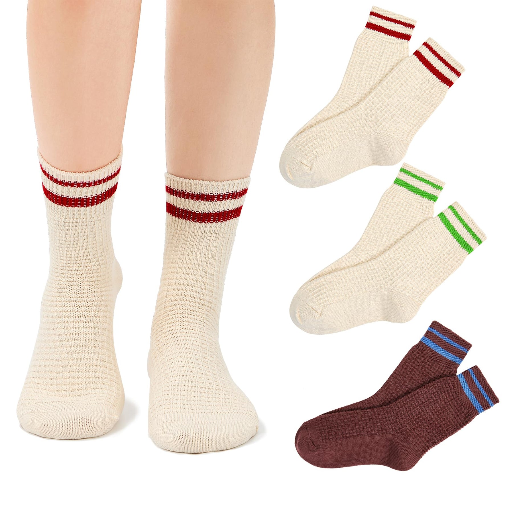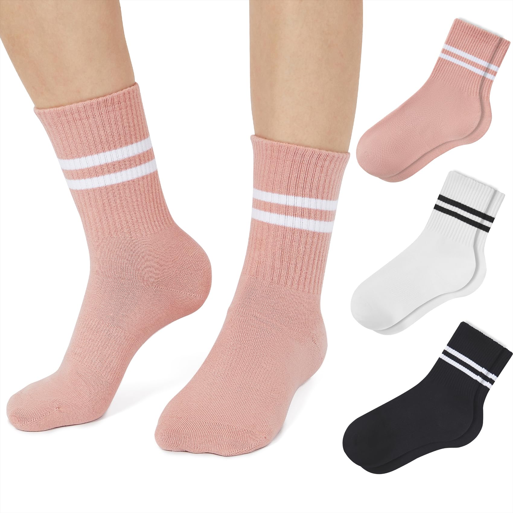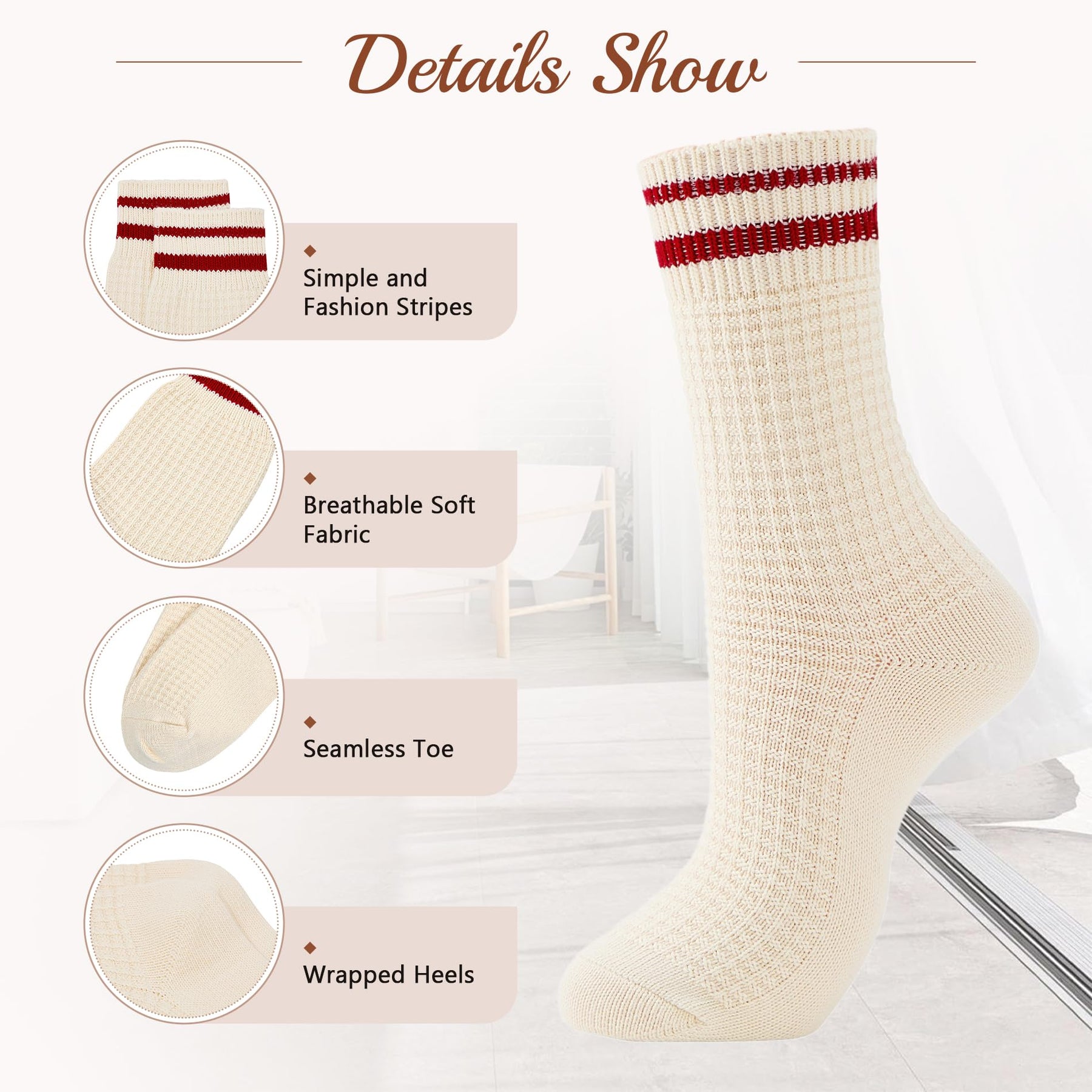 American Trends Retro Striped Crew Socks for Women Slouchy Athletic Calf Tube Socks Running Golf Tennis Volleyball Etc