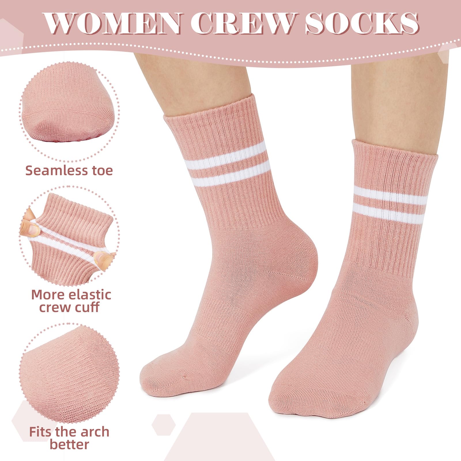 • Anti-Odor & Breathable: The crew socks for women are made of a blend of cotton, spandex and polyester, providing excellent breathability; During the entire day of wearing, sweat can be quickly excreted, thus maintaining dryness and preventing odor