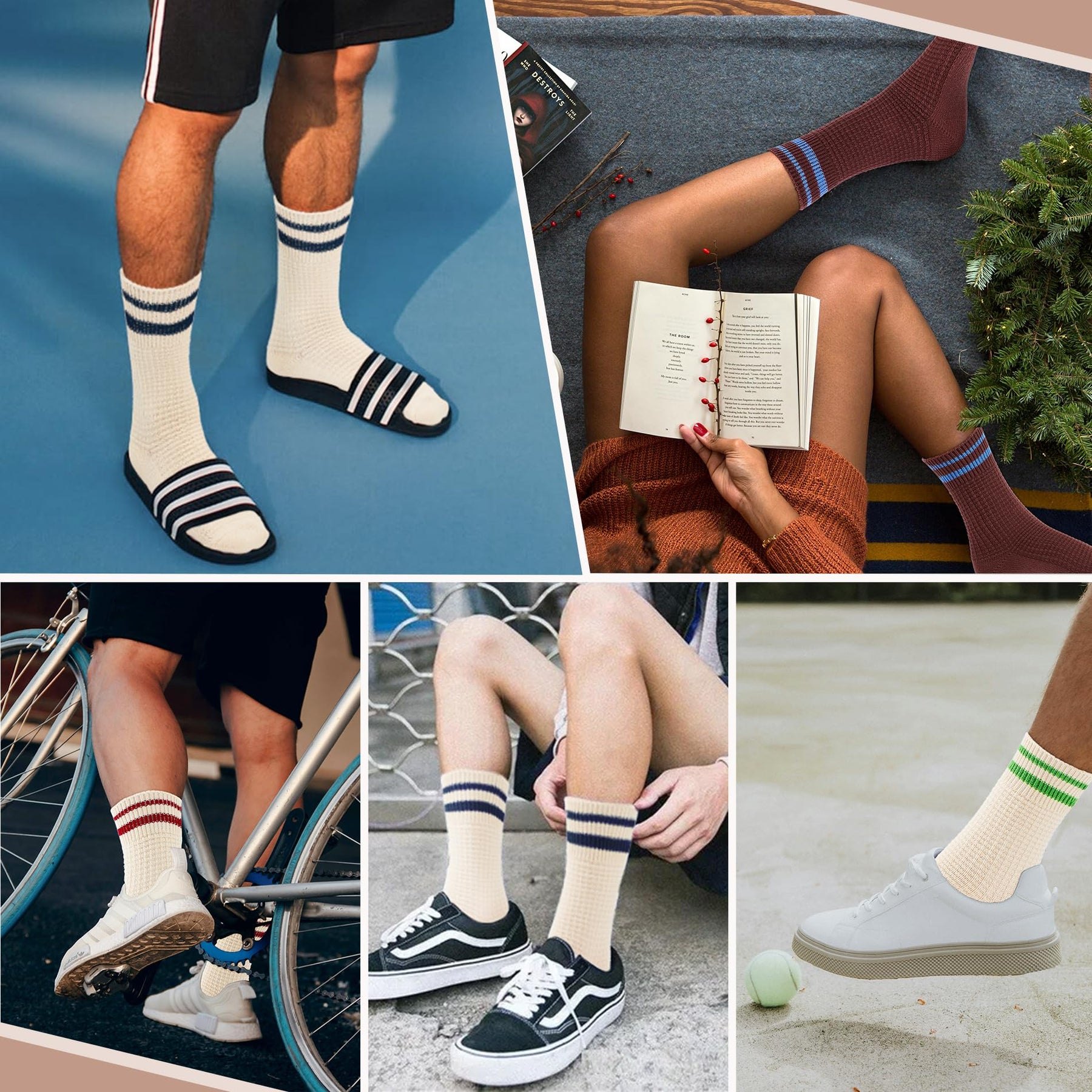 • Retro Stripe Socks: Striped socks features a retro stripe design, simple and durable, very in line with the popular retro trend in recent years; Vintage sock for women can perfectly match all your shoes, pants, and skirts; Retro socks are fashion items