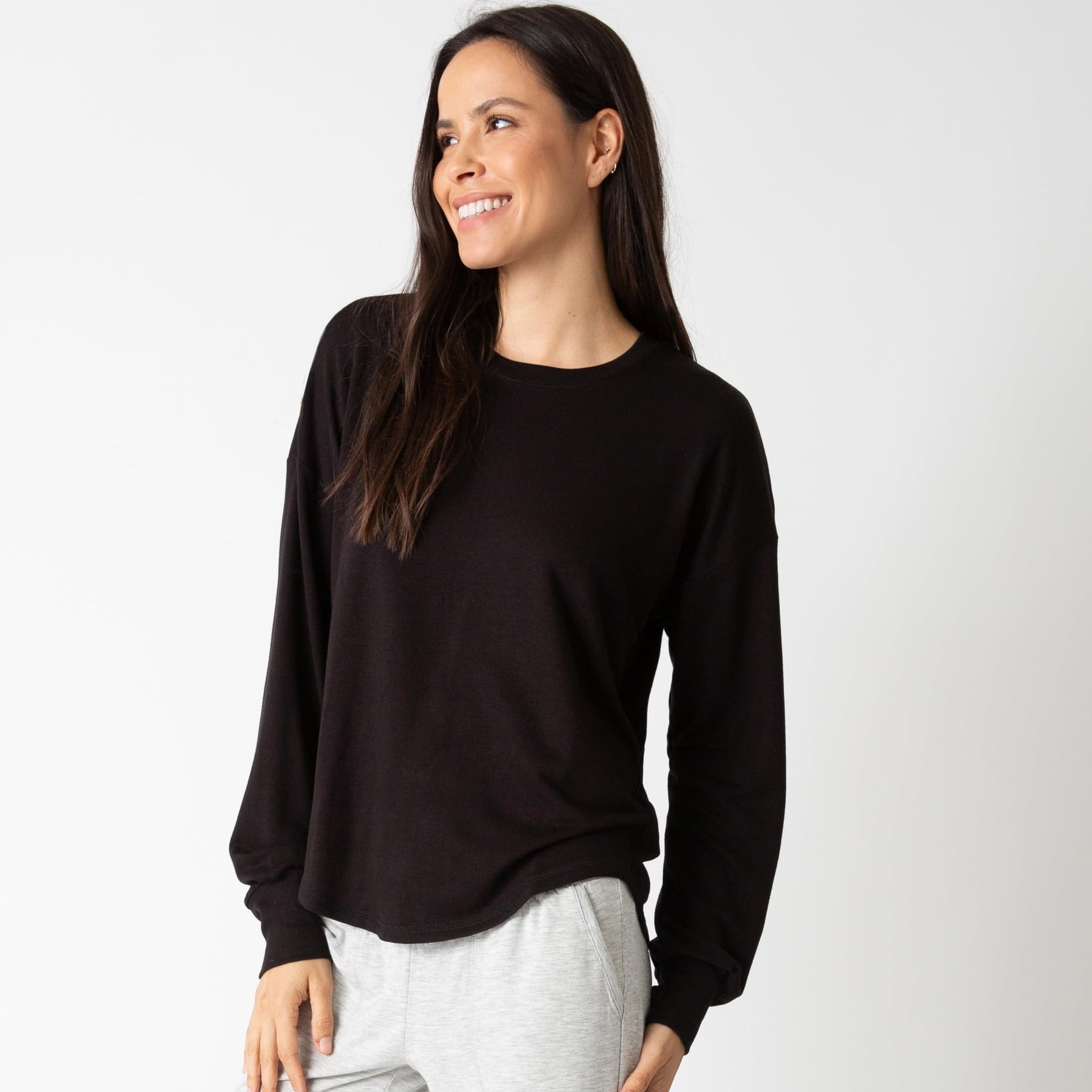 Experience the perfect blend of comfort and style with the PJ Salvage Women's Jammie Essentials Long Sleeve Top. Crafted from a luxurious blend of Rayon, Polyester, and Elastane French Terry, this top envelops you in softness and warmth, ideal for lounging or a restful night's sleep. Its chic designs effortlessly elevate your sleepwear game, while the durable construction ensures it maintains its shape and color wash after wash. Treat yourself to relaxation without compromising on style with PJ Salvage.