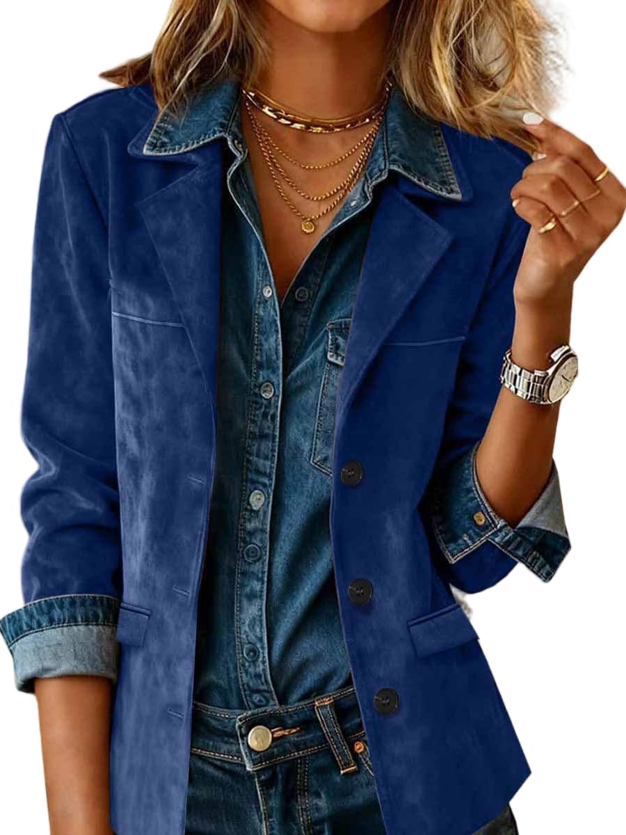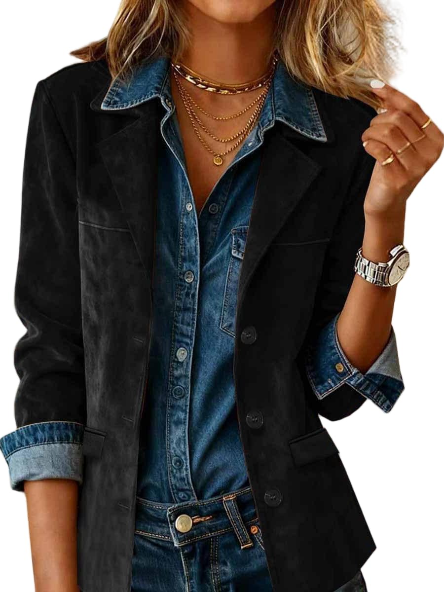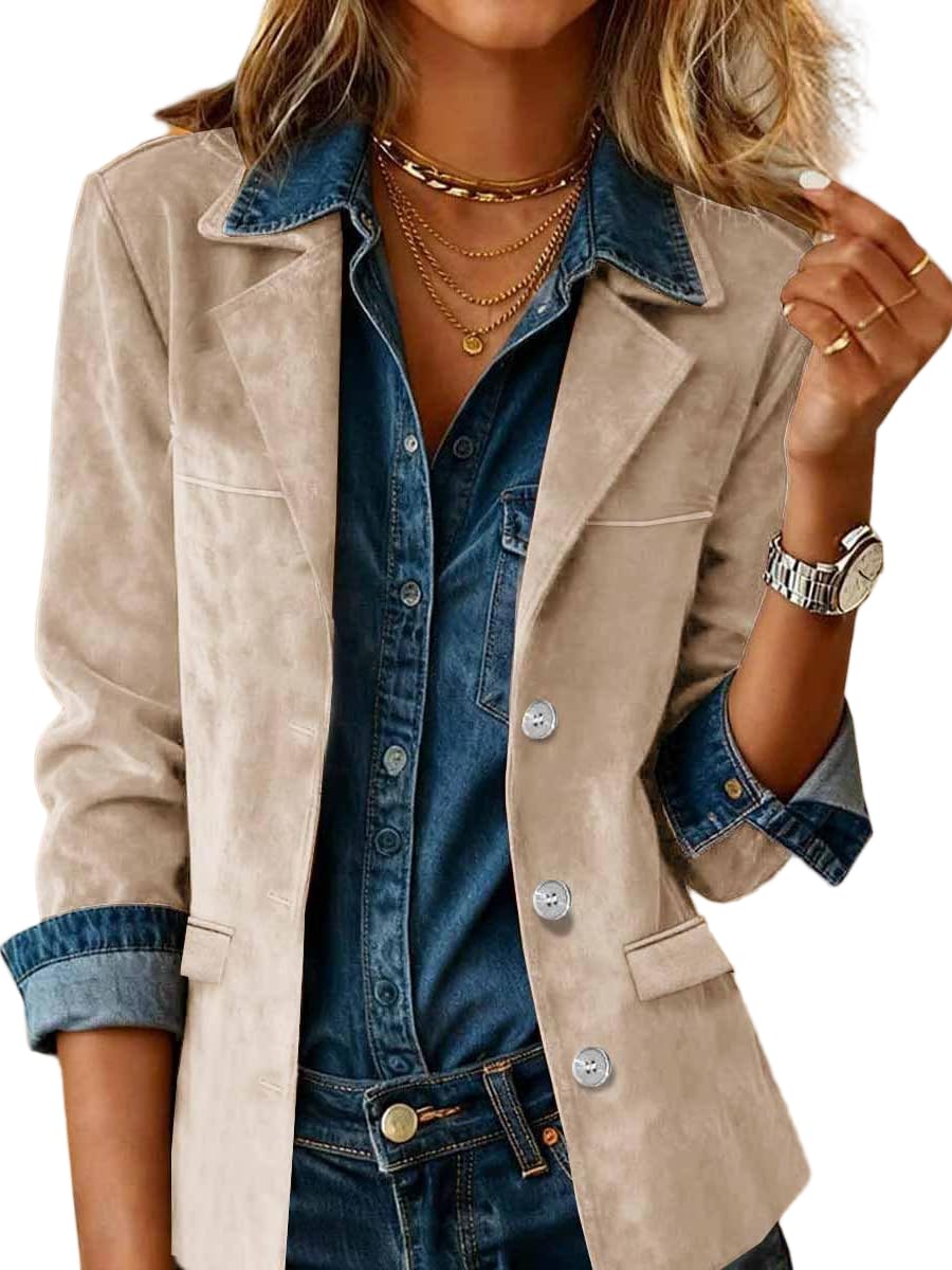 Materil: Womens suede blazer is crafted from premium soft faux suede outshell and polyester lining, offers exceptional comfort for autumn and early winter.