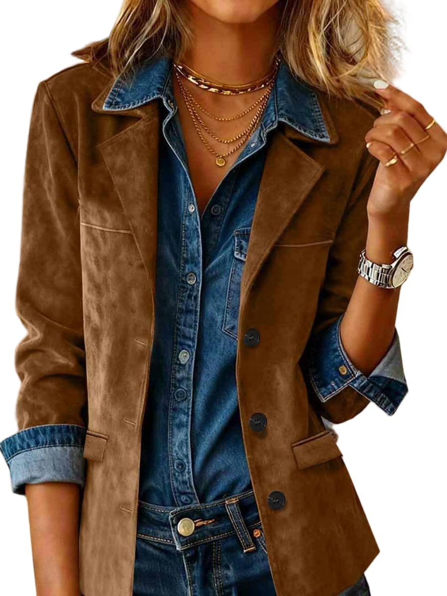 Womens Vintage Faux Suede Blazers 2025 Trendy Fall Winter Western Long Sleeve Barn Jackets with Pockets