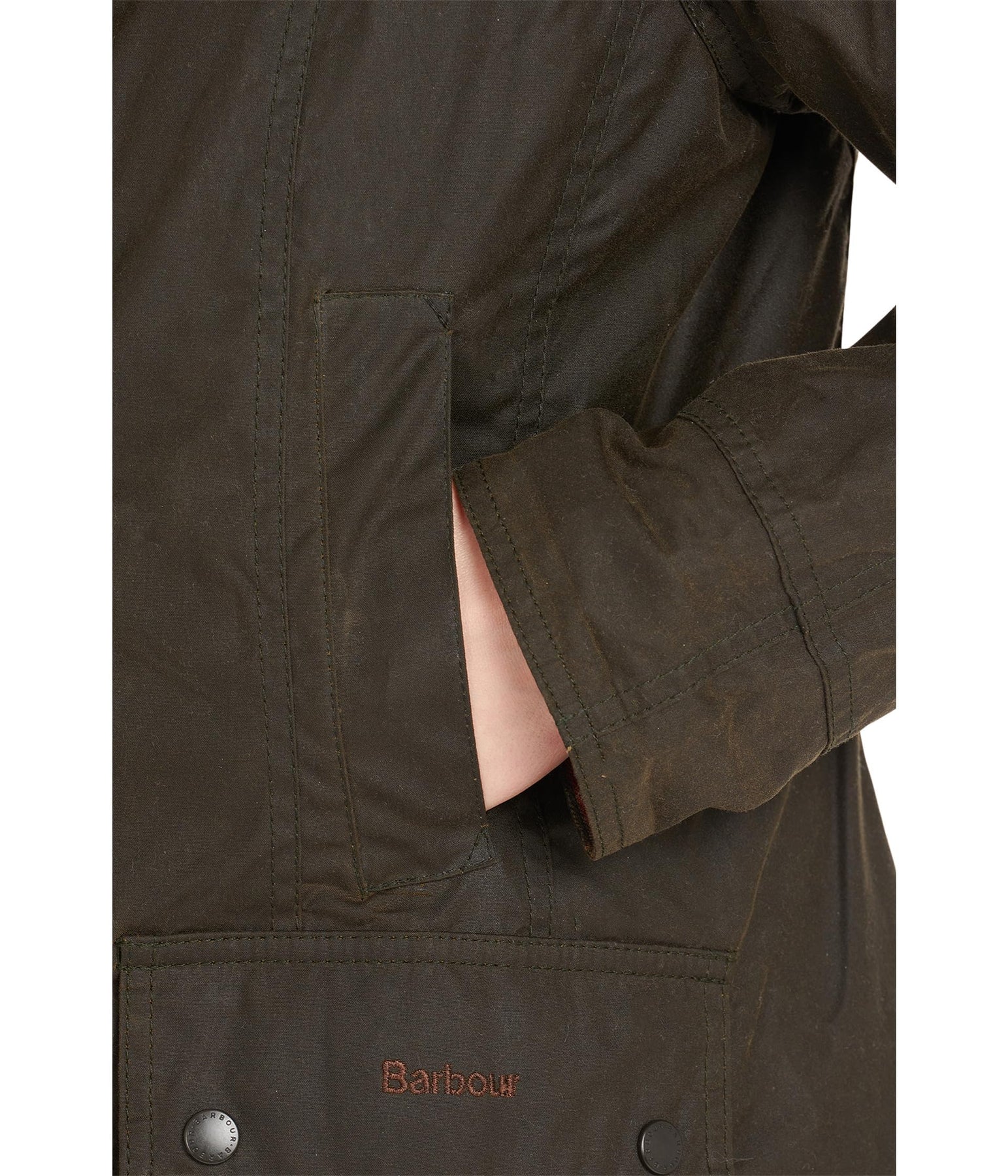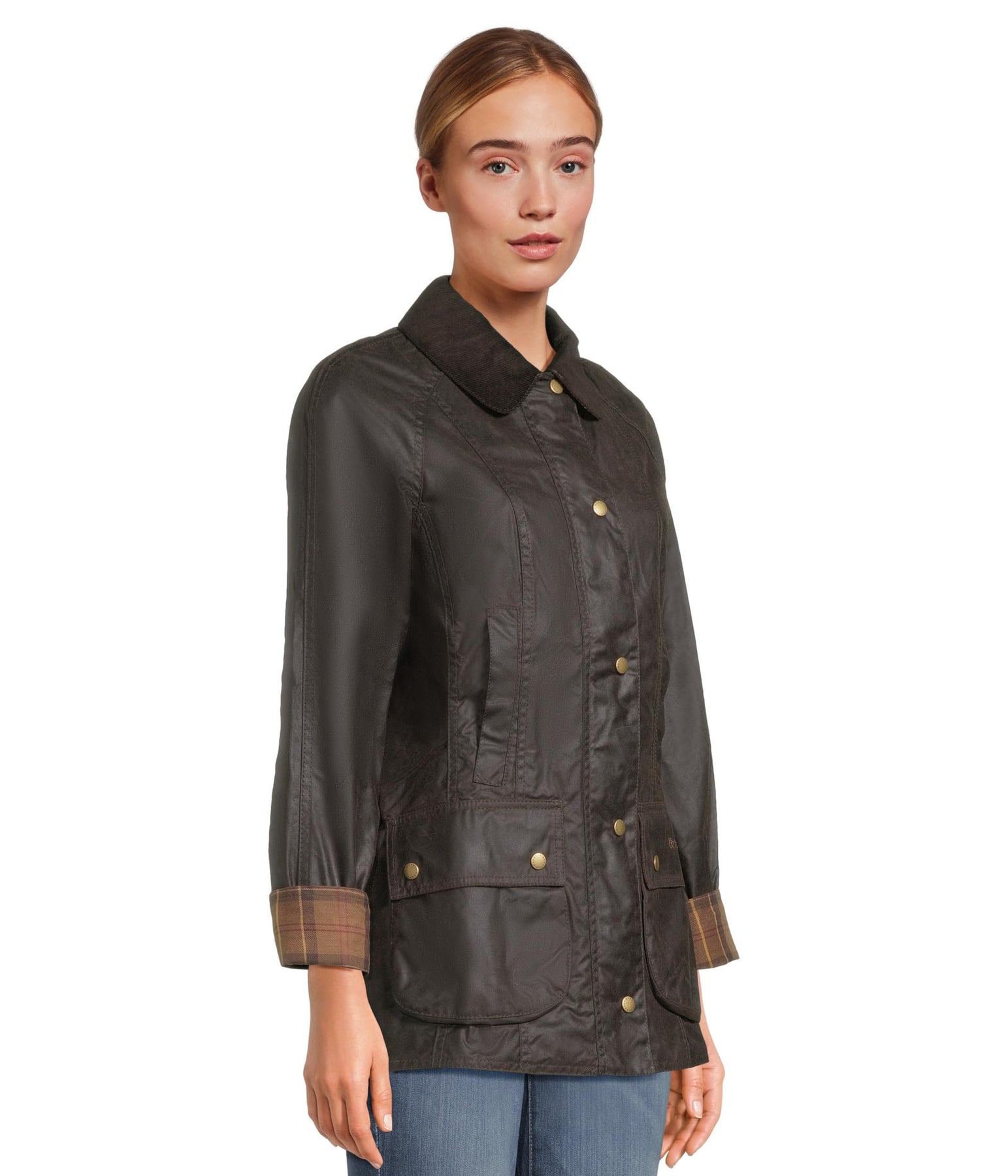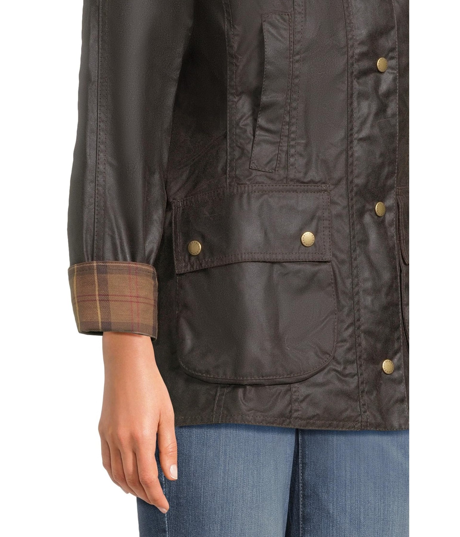 A true icon of the British countryside, the Barbour Classic Beadnell Wax Jacket is based on the legendary Bedale, updated with a new cut and seaming to create a more feminine silhouette with a timeless Barbour feel. Crafted with a Sylkoil waxed cotton outer and a cotton lining to the body which carries our signature tartan for the quintessential Barbour look, it's ideal for year-round wear and can be layered up or worn solo depending on the season. It features a traditional corduroy collar, storm fly fastening at the neck and a hard-wearing zipper with the addition of a snap fastening storm flap to keep the cold at bay. Classic details include handwarmer pockets lined with moleskin and our distinctive rounded lower bellows pockets with embroidered branding. Cut for a regular fit and a feminine silhouette we recommend that you check the size guide before selecting your size, particularly if you wish to layer it up in cold weather.